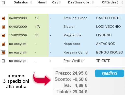 Esempio 1. Se raggruppi 5 spedizioni avrai 0,50 € di sconto.